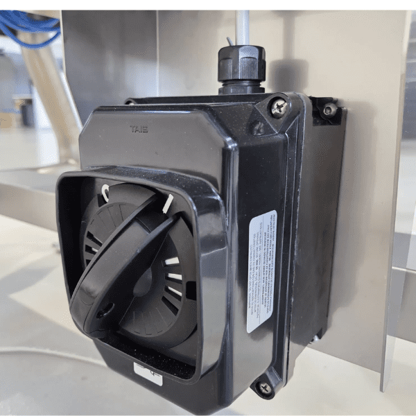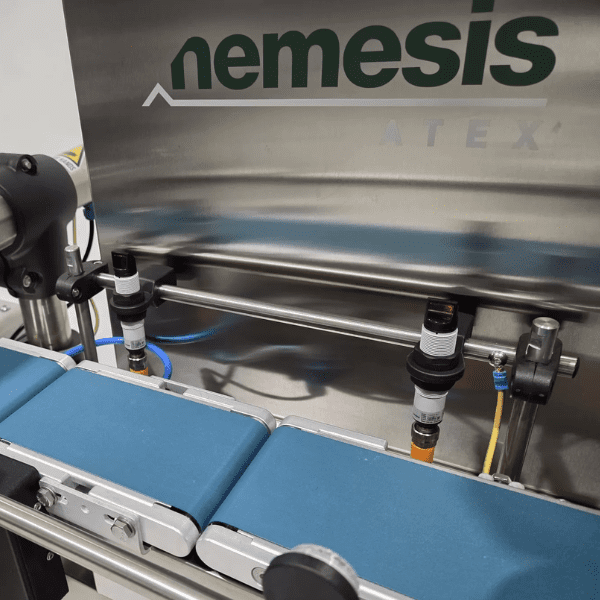 atex compliance iconThe system includes a mechanical push reject device suitable for classified areas and is constructed with antistatic plastic components to prevent electrostatic charge build-up and ensure safe and reliable operation.